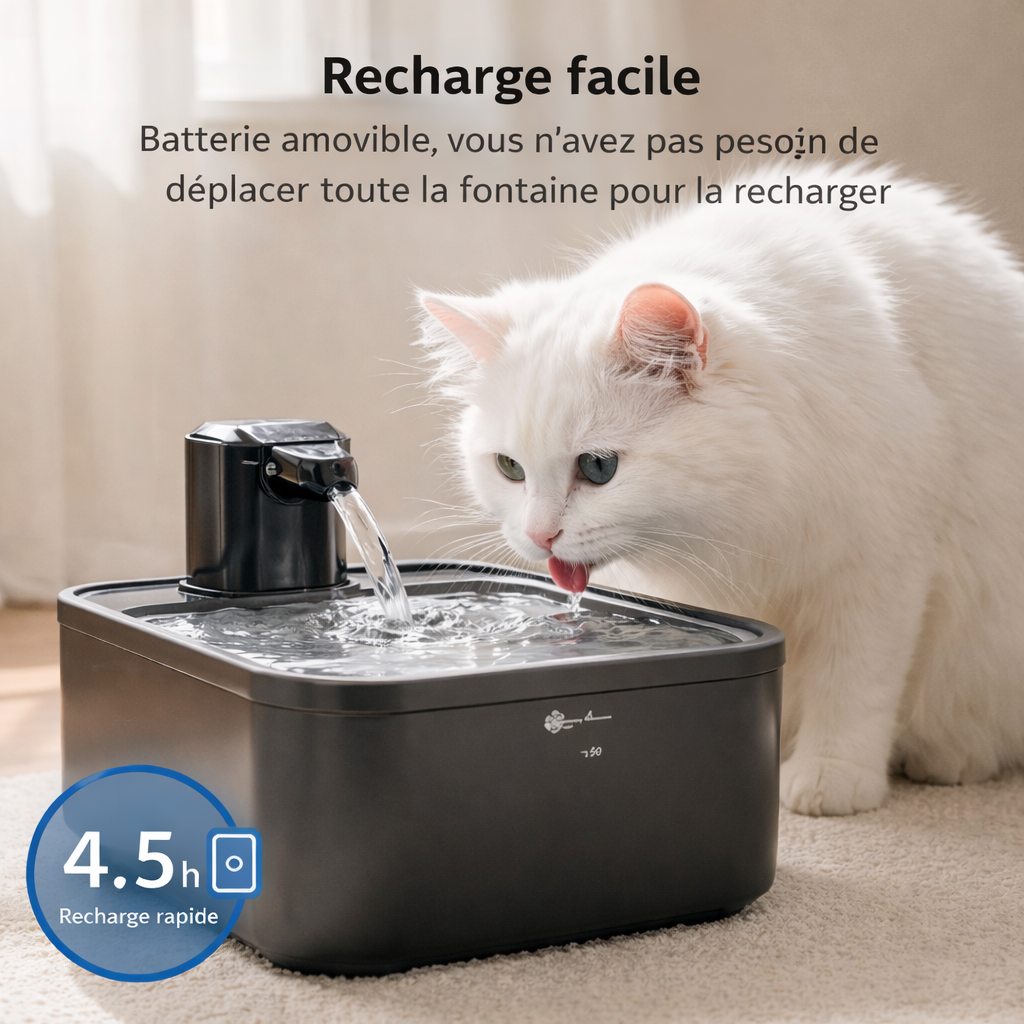 En plus, grâce au système de filtration et à la circulation continue, l’eau reste propre et oxygénée, ce qui améliore encore l’appétence pour votre chat. Résultat : un chat mieux hydraté, en meilleure santé, sans effort supplémentaire pour vous.